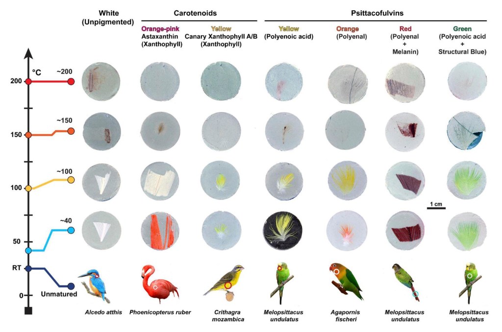 Simulating feather carotenoid & psittacofulvin fossilization